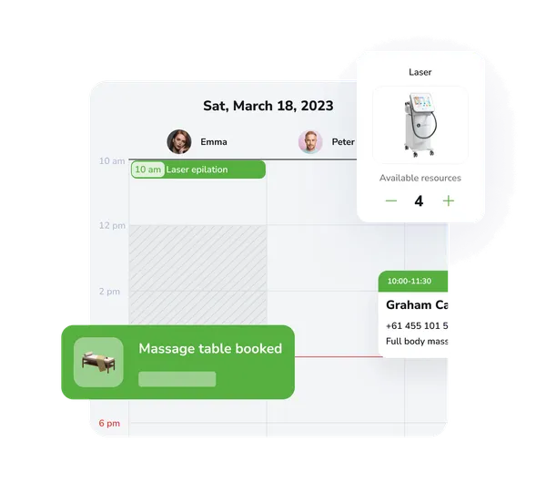რესურსების მართვა არის ყველა აქტივის აღრიცხვა და კონტროლი, რომელიც საჭიროა მომსახურების გასაწევად: აღჭურვილობა, სივრცეები, მასალები, ინსტრუმენტები. სისტემა ავტომატურად აკონტროლებს მათ ხელმისაწვდომობას.